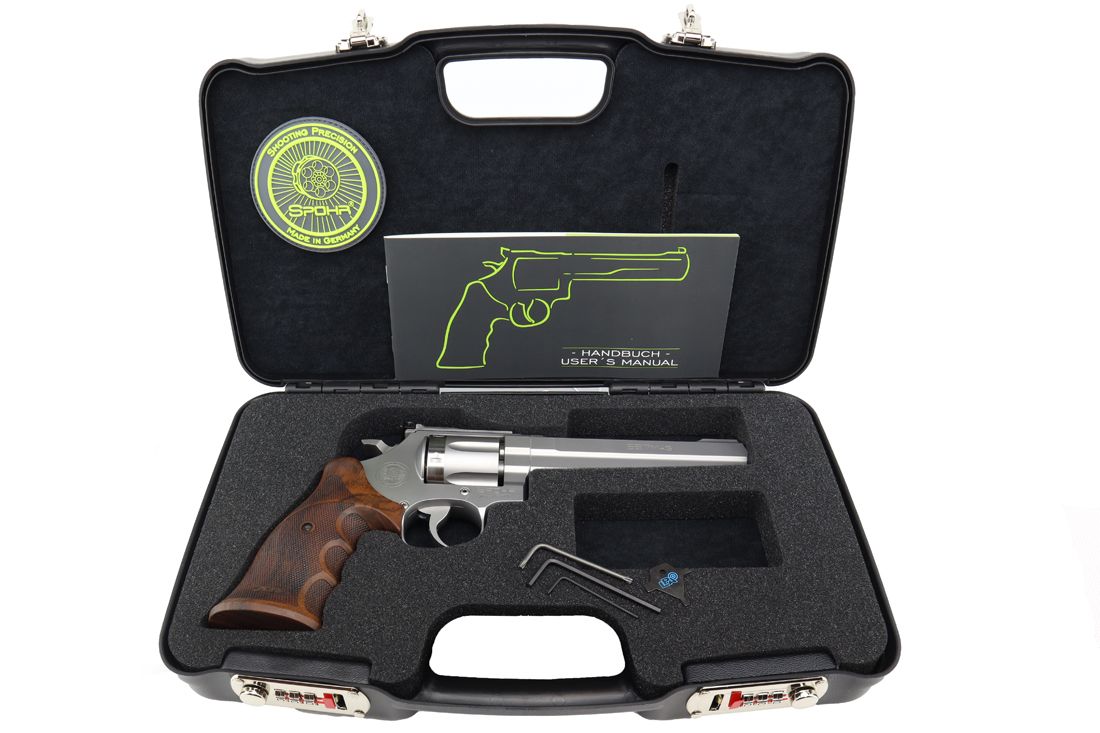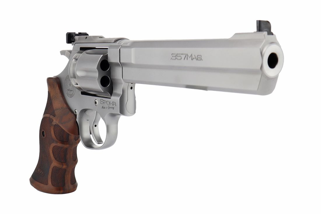 Der Spohr L562 Standard 6.0 vereint traditionelle Revolverhandwerkskunst mit modernen Fertigungsverfahren. Sein kaltgehämmerter Polygon-Matchlauf liefert ausgezeichnete Trefferbilder und sorgt gleichzeitig für hohe Standfestigkeit und vereinfachte Reinigung. Dank der sorgfältigen Material- und Fertigungswahl bleibt die Präzision auch nach intensiver Nutzung erhalten.